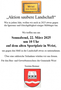 Gemeinde Wrist – „Aktion saubere Landschaft“ Gemeinsam für ein sauberes Wrist