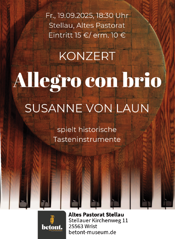 Die renommierte Musikerin Susanne von Laun lädt zu einem besonderen Konzertabend ein.Unter dem Titel „Allegro con brio“ präsentiert sie Werke auf historischen Tasteninstrumenten und entführt das Publikum in die Klangwelt vergangener Jahrhunderte.